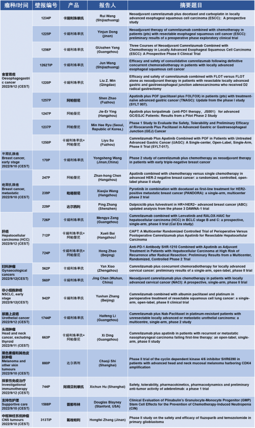 作为从事创新和高品质药物研发的国际化制药企业,G22恒峰医药的研究成果在2022 ESMO大会上还收获了25项壁报形式的报告。其中,食管胃癌领域共有9项研究入选,研究的方案主要是卡瑞利珠单抗或卡瑞利珠单抗联合阿帕替尼,通过与化疗或放化疗联用,新辅助治疗食管鳞癌或胃癌。2022年9月12日(CEST),让我们齐聚ESMO大会,共同领略食管胃癌研究领域的学术盛宴。此外,G22恒峰医药达尔西利、吡咯替尼、阿得贝利单抗等创新药还有4项乳腺癌研究、3项肝癌研究及其他领域的9项研究都将会以壁报展出,让我们共同期待!