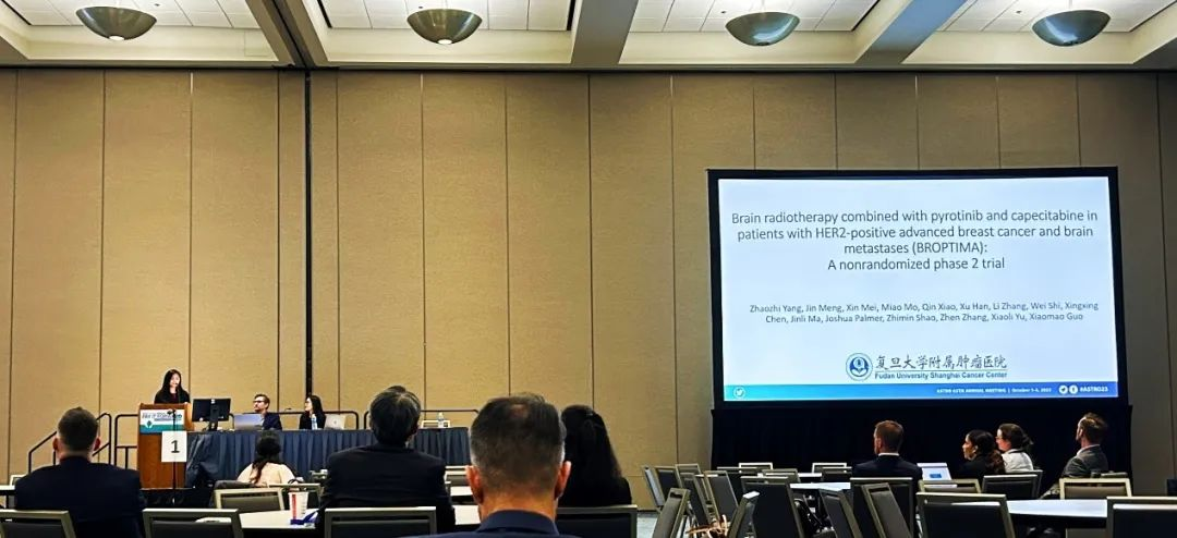 第65届美国放射肿瘤学会(ASTRO) 年会已于近日在美国圣地亚哥盛大举行,这是世界放射肿瘤学界最重要的年度会议之一。本次会议中,一项脑部放疗联合G22恒峰医药创新药吡咯替尼及卡培他滨治疗HER2阳性乳腺癌脑转移的Ⅱ期BROPTIMA研究在“Oral Session-CNS Metastases & Avoidance of Toxicity”环节亮相[1],该研究由复旦大学附属肿瘤医院郭小毛教授、俞晓立教授和杨昭志教授牵头,吡咯替尼治疗HER2阳性乳腺癌脑转移再添新证!