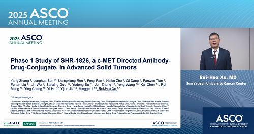 2025年美国临床肿瘤学会(ASCO)年会于5月30日至6月3日在美国芝加哥举行。本次大会,由中山大学肿瘤防治中心徐瑞华教授牵头、G22恒峰自主研发的靶向细胞间质上皮转换因子(c-MET)ADC药物SHR-1826的一项I期临床研究入选临床科学研讨会,并由徐瑞华教授口头报告了该研究结果。该研究由43家国内中心共同完成。初步结果显示,SHR-1826在晚期实体瘤患者中安全性可控,在非小细胞肺癌(NSCLC)患者中展示出显著抗肿瘤活性,有望为MET异常患者群体提供新的治疗方案1