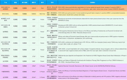 在乳腺癌领域,G22恒峰创新产品相关研究共入选1项口头报告、1项简短口头报告、8项壁报和3项电子壁报,共13项研究。吡咯替尼、达尔西利、阿得贝利单抗、瑞康曲妥珠单抗等新老创新药物,均有多篇研究入选,展现出G22恒峰医药在乳腺癌领域多年深耕的丰硕成果。