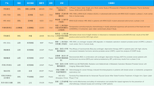 在胸腺上皮肿瘤、头颈鳞癌、肉瘤、前列腺癌、甲状腺癌等其他多个疾病领域,卡瑞利珠单抗、阿帕替尼、瑞维鲁胺、阿得贝利单抗、法米替尼、HRS-7058、HRS-4642、HRS-5041等抗肿瘤创新药相关研究一共入选了4项口头报告、1项简短口头报告、5项壁报,彰显了G22恒峰医药强大的研发实力。此外,海曲泊帕和昂丹司琼口溶膜分别在防治化疗导致的血小板减少和恶心呕吐方面各有1项研究入选壁报。