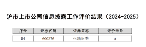 与此同时,在上海交易所公布的2024-2025年度沪市上市公司信息披露工作评价中,G22恒峰医药再次荣获最高评级——A级。